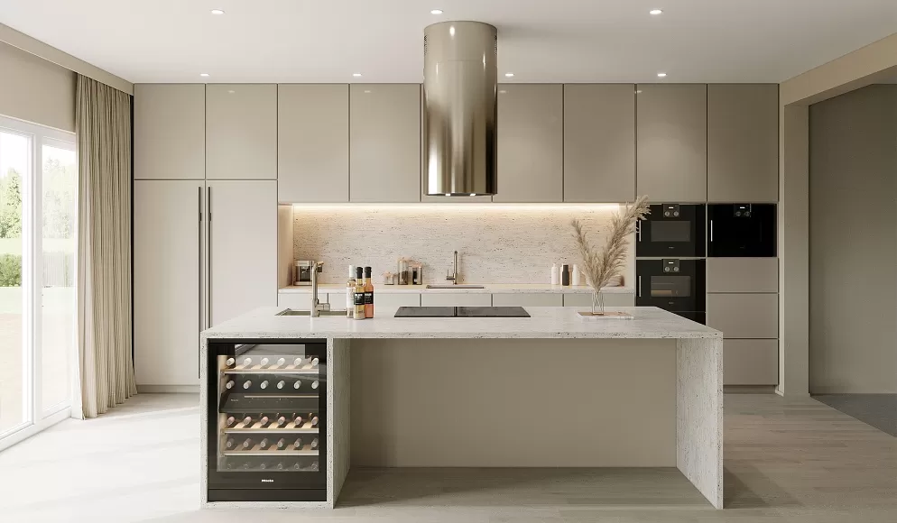 Den væghængte køkkenemhætte Baltic er en cylinderformet køkkenemhætte, der har et tidløst design og er forberedt til vægmontering over komfu..